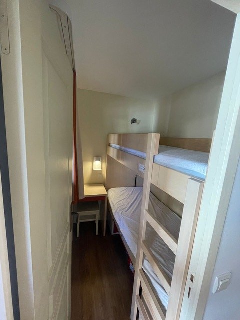 🛏️ Une chambre avec un lit 160, une chambre avec deux lit superposés 90 un canapé lit 180 et un lit escamotable 90.