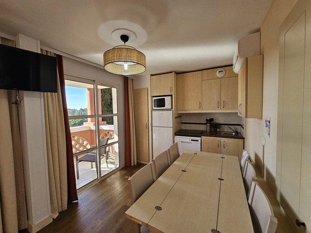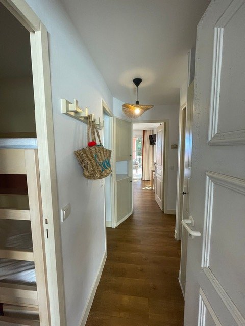 La résidence totalement piétonnée propose 5 piscines, un golf, 17 courts de tennis et padel, ainsi que de nombreux commerces et restaurants au coeur du village. La plage est accessible à moins de 400 m à pied, un petit train gratuit vous transporte du domaine jusqu’au bord de mer, et des animations variées rythment vos vacances d’avril à novembre.