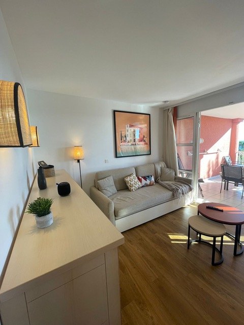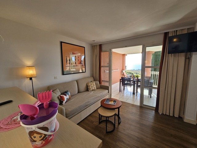 Profitez d’un appartement T3 de 37 m2 entièrement climatisé, idéalement situé au Cap Estérel, Saint Raphael. Lumineux et très fonctionnel, il comprend un salon avec cuisine équipée, une chambre double, une chambre cabine, canapé lit, un lit escamotable, une salle de bain et une salle de douche avec des WC. La grande terrasse de 17 m2 offre une vue imprenable sur la Méditerranée et le massif de l’Estérel, parfaite pour vos repas ou vos moments de détente.